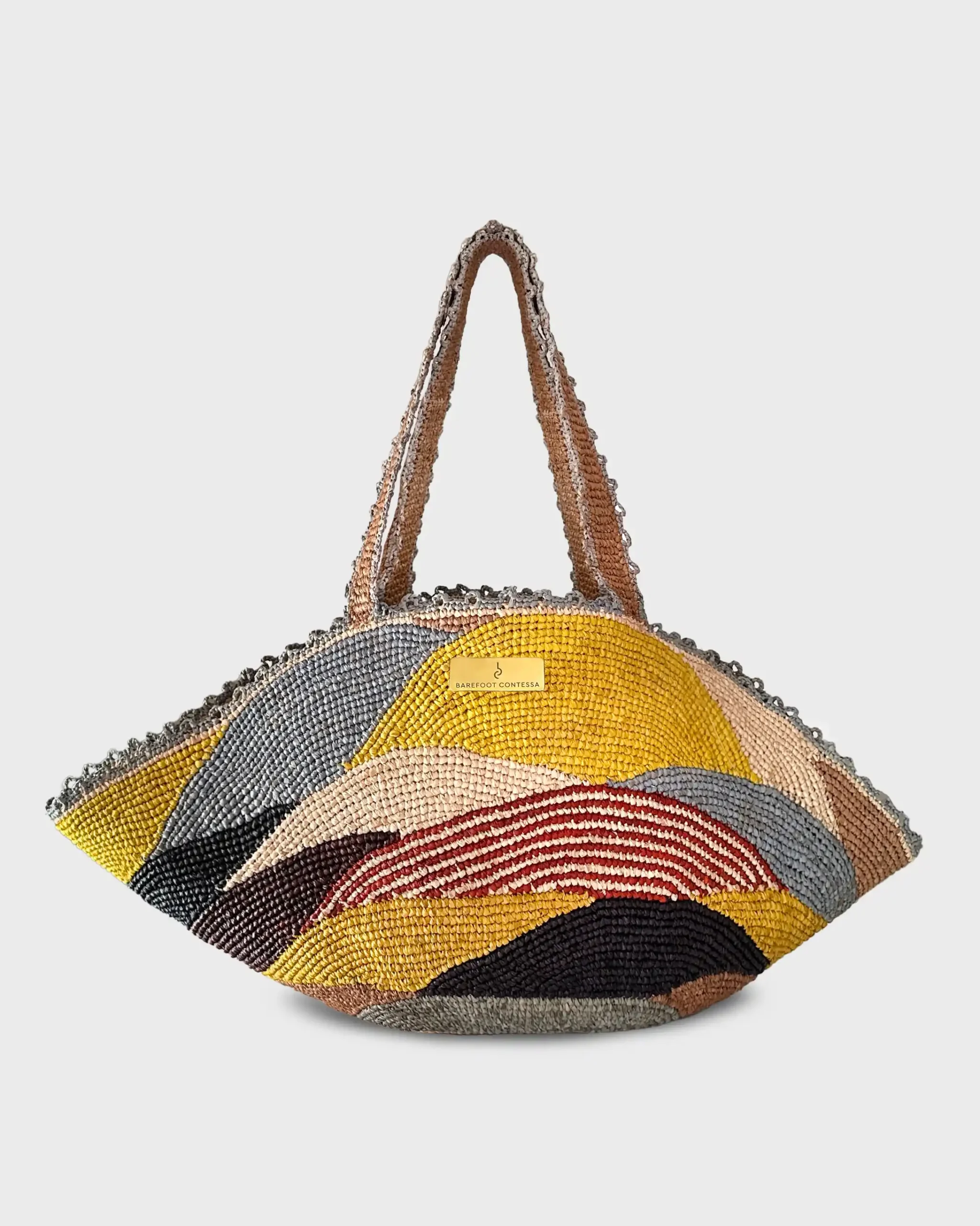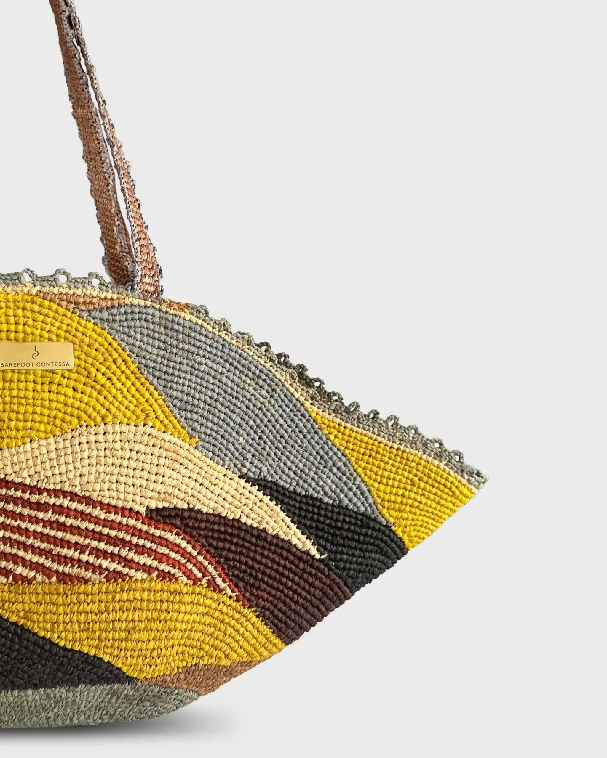 This oversized raffia bag makes a bold statement with its vibrant woven colors, blending natural tones with eye-catching accents of light blue grey and green, black, cinnamon and sunny yellow. Hand-crafted from sustainable raffia palm fibers, its generous proportions offer plenty of room for beach essentials, shopping hauls, or weekend getaways. The sturdy handles and lightweight yet durable construction make it as practical as it is stylish. Perfect for those who love effortless, bohemian-inspired accessories with a pop of color.