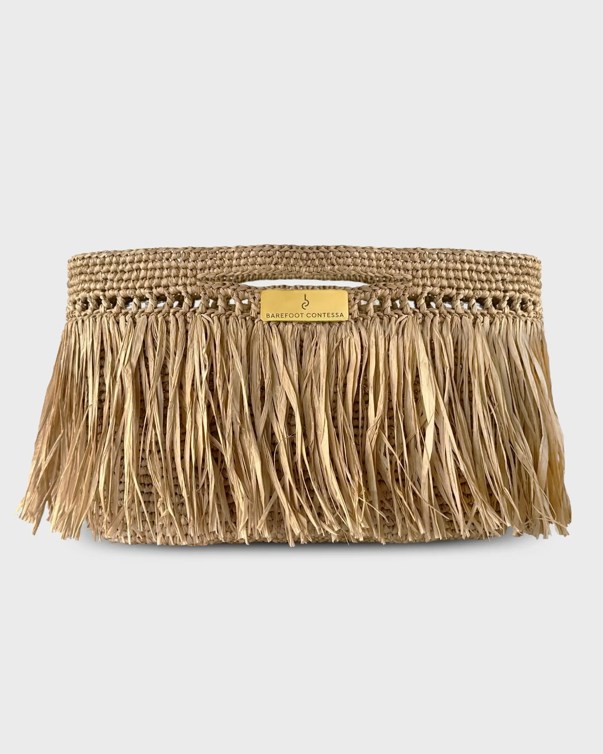 The Freya raffia bag brings effortless bohemian elegance to any occasion. Compact yet perfectly sized for essentials, it features playful fringe detailing that sways with every movement, adding texture and drama to the natural woven raffia. Lightweight and beautifully crafted, this clutch strikes the perfect balance between laid-back charm and polished style a versatile piece that transitions seamlessly from day to night.